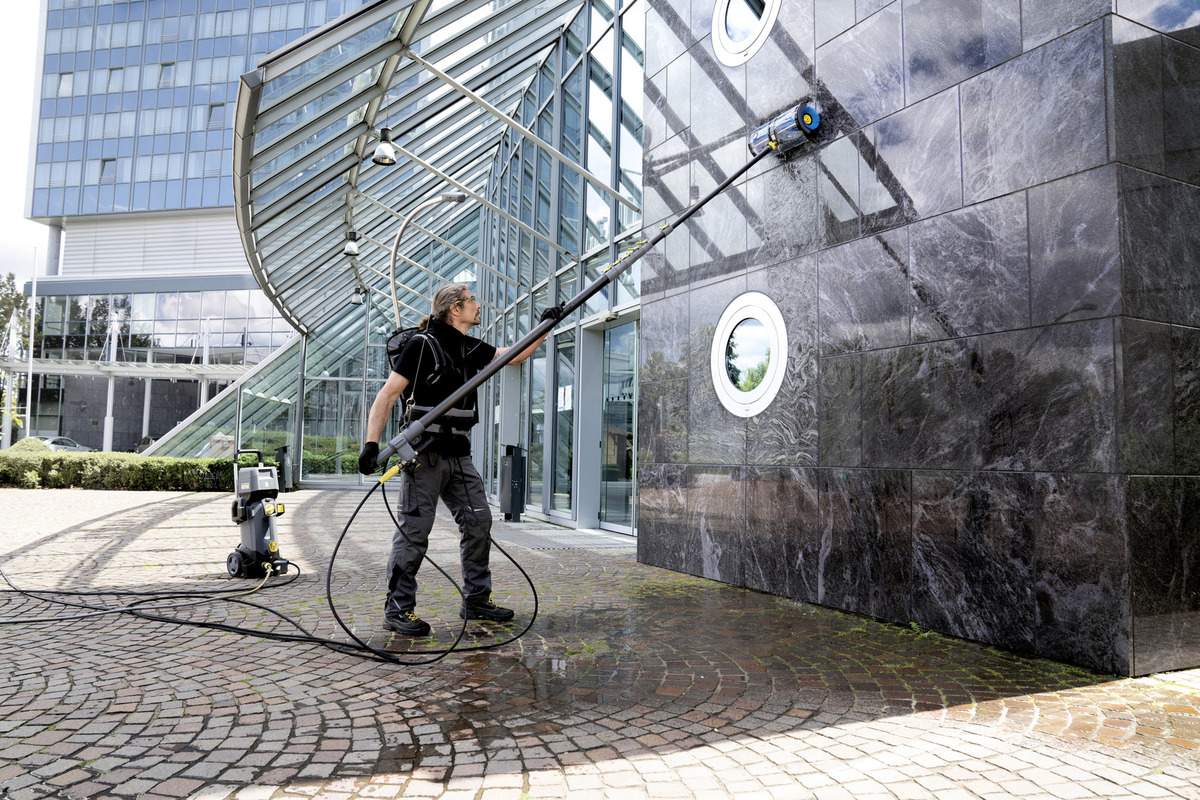 Sa svojom visokokvalitetnom i dugotrajnom izvedbom od nehrđajućeg čelika i polietereterketona, hidraulička jedinica za valjkaste četke povećava mogućnosti naših visokotlačnih čistača – čak i kod najmanjih modela s malim količinama vode. Pogonska jedinica s integriranom polugom za prskanje za savršeno ispuštanje vode omogućuje korištenje nastavaka s četkama različite tvrdoće koji se zahvaljujući sustavu za brzu zamjenu vrlo jednostavno zamjenjuju i na siguran način pričvršćuju na pogonsku jedinicu. Postoje opcije za neposredno postavljanje na cijev za prskanje i na teleskopsku cijev. Nastavci su, ovisno o izvedbi, prikladni za zahtjevne poslove čišćenja solarnih postrojenja, staklenih površina, osjetljivih i grubih fasada, kao i za dvorišta s kamenim ili drvenim površinama. Kod čišćenje fasade, četke se automatski postavljaju prema gore, te se na taj način smanjuje fizičko opterećenje za korisnika. Osim toga su opcionalno dostupni i zaštita od prskanja (4.762-621.0) te okretni zglob (4.481-042.0).